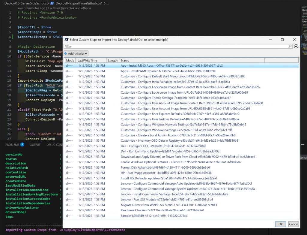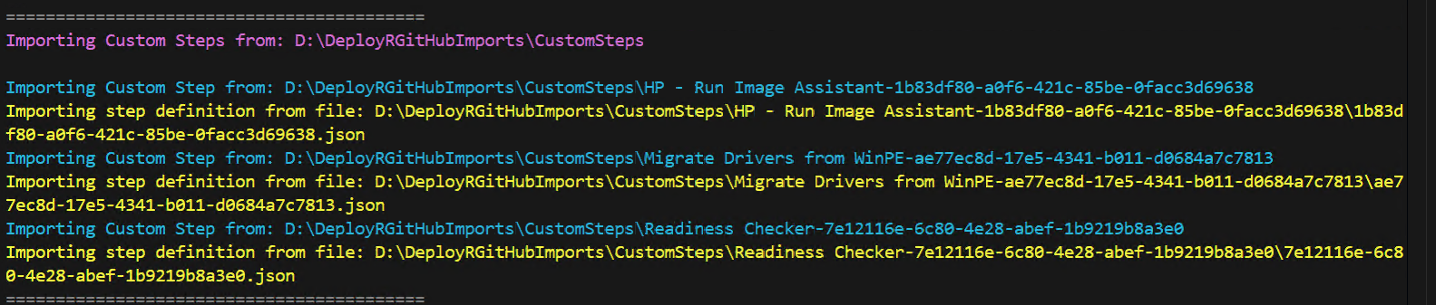 If you’d like to use the steps I’ve created, you can find them in my GitHub: 2PintLabs/DeployR/CustomSteps at main · gwblok/2PintLabs. It might be easier to grab the full repo and then point to the desired items when importing.